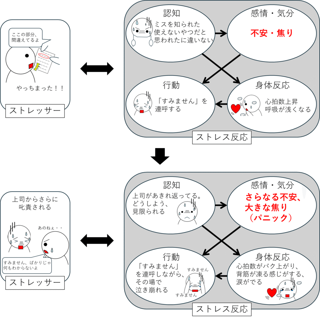 なにか出来事(ストレス)があったとき、人はそれに対して反応をします。